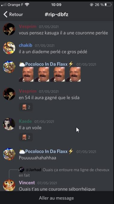Leur discord comporte une trentaine de personnes, et j’en faisais parti depuis pratiquement le début du jeu. Le discord était privé et en sachant cela tout le monde se faisaient le plaisir de parler sur tout le monde, moi y compris. J’ai donc pu dire des choses déplacés dans ce serveur sur des membres de la communauté c’était privé donc je me disais juste que c’était de la vanne sans forcément le penser dans le fond, je me complaisais juste dans le serveur et je prenais aucun recul sur la situation.