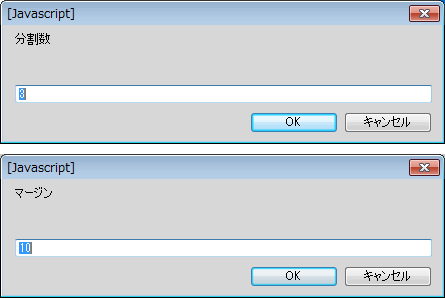 プロンプトが2回出ます。1回目は分割したいカラム数を、2回目はカラム同士のマージンを入力します。