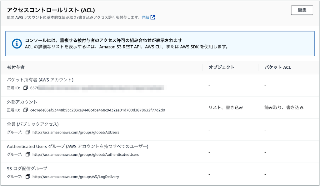 # バケット ACL に付与する CloudFront の被付与者 ID