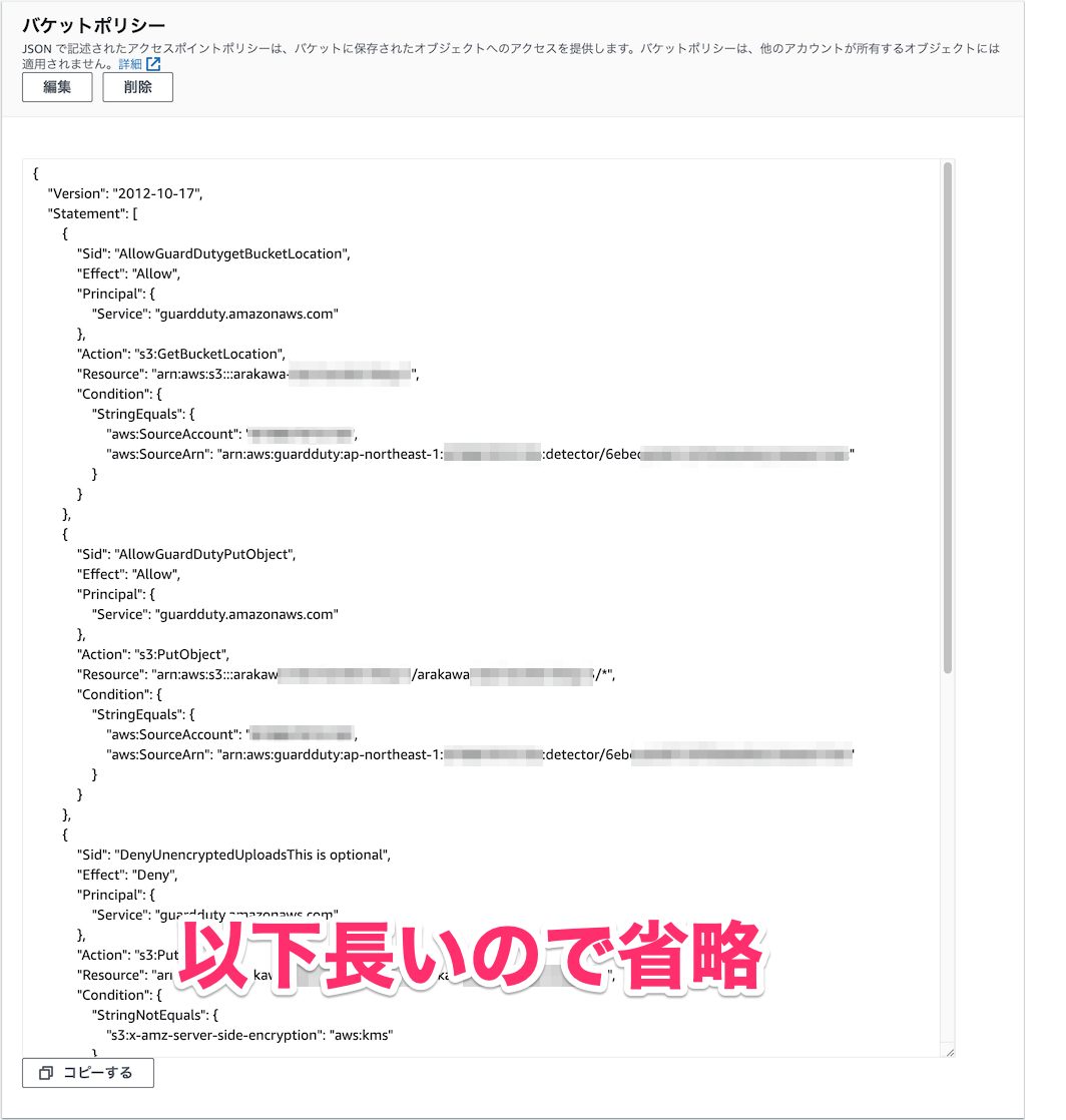 そのため、あらかじめ Detector を Terraform 管理外で作った場合は、手動で削除してから Terraform で作成するか、マネジメントコンソール(東京リージョンの場合) から探知機 IDをコピーしてバケットポリシーを変更してください。