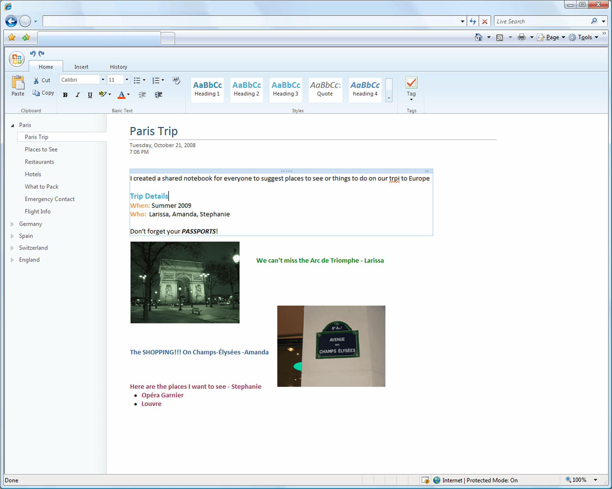 ウェブアプリケーション版OneNoteで編集中