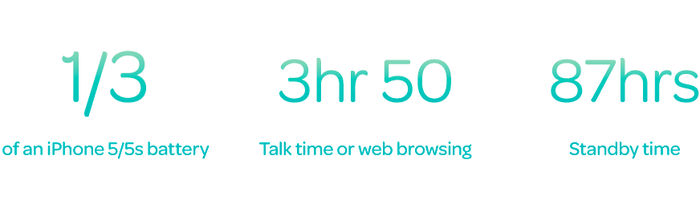iPhone 5/5sに換算した場合、バッテリー容量の3分の1があれば、3時間50分の通話と87時間の連続待受が可能となります。