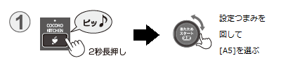 - 「COCORO KITCHEN」キーを長押しして、無線LAN設定モードに入り、[A5]を選ぶ。