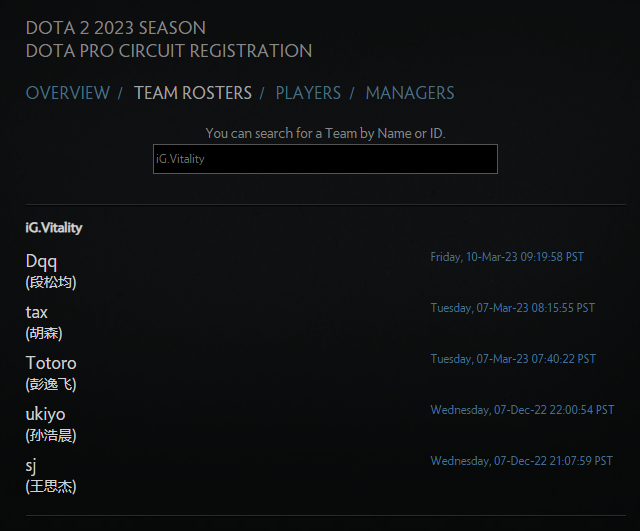 - ↑ 26.0 26.1 26.2 26.3 26.4 "Dota 2 - Dota Pro Circuit Registration". Valve. 2023-05-09.