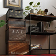これはサイドテーブルです。大きさはこのくらい。ソファやベッドのそばに置きます。いろいろと収納できます。引き出しです。一番上は、ガバッと開けることもできます。この奥の部分には…雑誌を入れておくことができます。多機能に使えます。白いのもあります。
