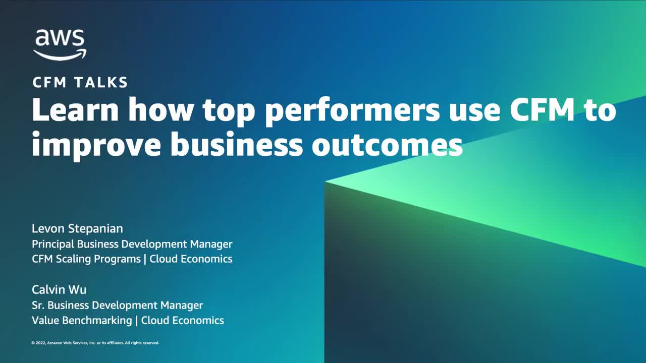 A recent, global survey of 1000 customers quantified the business value associated with migrating to AWS and implementing a programmatic approach of Cloud Financial Management (CFM)/Cloud FinOps. In this webinar, we’ll dive deep into the results of the AWS commissioned study and review CFM best practices that distinguish top-performing enterprises from their peers (top-performing enterprises achieved a top 10% average score across 22 surveyed KPIs). We’ll also describe AWS mechanisms that can help establish or advance your organization’s cost management initiatives.