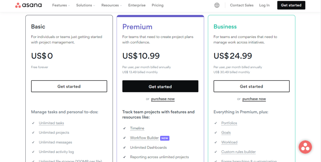 Asana offers 3 Pricing options for users to serve their unique project management requirements.