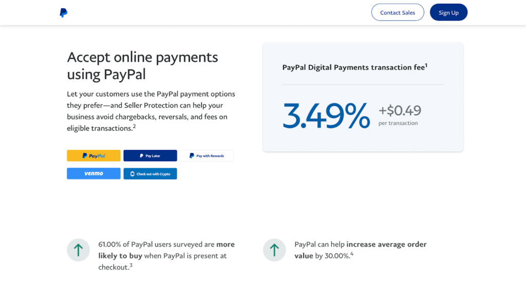 Flexibility is key in today’s diverse marketplace, and PayPal delivers. Accept credit and debit cards, PayPal balances, bank transfers, and even installment payments. Plus, with support for digital wallets like Apple Pay and Google Pay, you’re giving your customers the convenience they crave, which can lead to more completed sales.