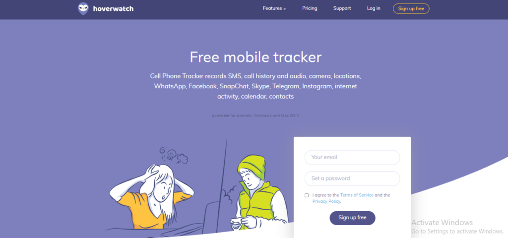Hoverwatch is a social media monitoring tool that records WhatsApp chats, Snapchat data, skype messages, Instagram messages and internet activity. Hoverwatch is compatible with Windows, Android, and Mac OS X. Hoverwatch is a perfect tool for parents to track their child's social activities or for businesses to monitor professional devices during business hours.