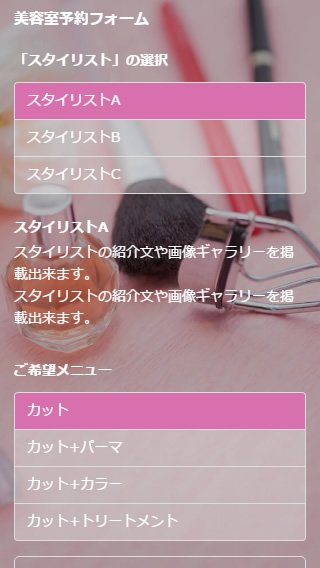美容院・ヘアサロン・ネイルサロン・整体院など、お客様がサービスを受けるスタッフを指名したい業種に対応した予約フォームが作成出来ます。