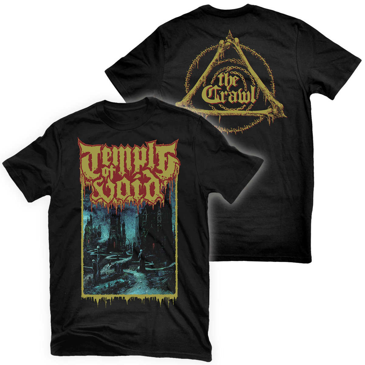 The Crawl was tracked in a single “colder-than-hell” week in January, etched into proverbial obsidian at Kurt Ballou’s GodCity Studio (Gatecreeper, High On Fire) in Salem, MA. Ballou was assisted by engineer Zach Weeks (Deafheaven, Fuming Mouth). Both studio mavens were enlisted by TEMPLE OF VOID because they wanted a “human”-sounding, spontaneous record. This is evident from the heavy-as-fuck, raw-edged guitar and bass tones, as well as Pearce’s in-the-room drum sound. Ace Brad Boatright, who’s handled everyone from Sleep to Michael Stein and Kyle Dixon (aka Stranger Things), was brought on to master at his Audiosiege Mastering Studio in Portland, OR.