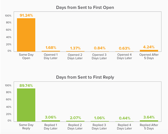 另一项类似研究发现,第一封开发信的回复率为 30%,第四封邮件的回复率为 14%。 他们实际上总共发送了 10 封客户开发信,即使是最后一封邮件的回复率也只有 7%。