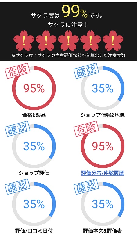 レビューの確認はやらせ&サクラ評価などを判別する「サクラチェッカー」がおすすめです。