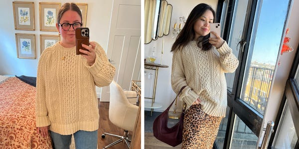 This 100% cotton fisherman knit sweater from L.L.Bean is our favorite for comfort, durability, and timeless style.