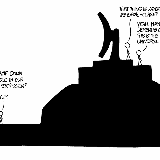 - Also above ground and around the Destroyer (and other flying things) there are many "all white" images with empty air. Lots of these white tiles are not active (4480 possible white images are not linked from xkcd). But many of them are.