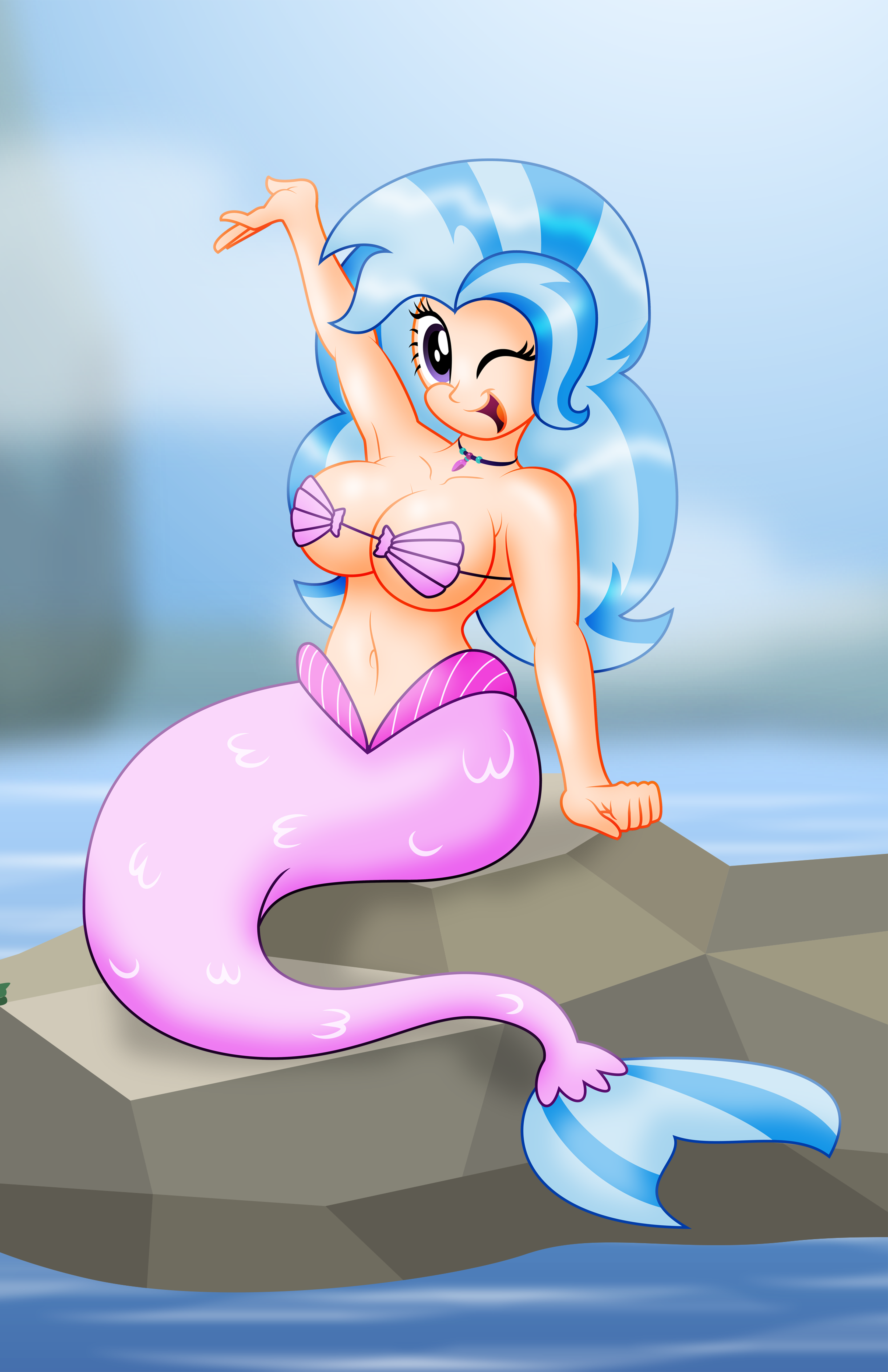 aleximusprime my_little_pony mylittlepony friendship_is_magic friendshipismagic hasbro mlp fim mlpfim mlpg4 silverstream pinup big breasts large huge boobs juggs tit cleavage seductive curvy voluptuous adorasexy sexy cute cutie humanized wide hips thick thunder thighs naval belly_button belly button wink winking seashell shell bottomless mermaid fish_tail dummy_thicc thicc midriff hourglass_figure hourglass figure dat phat ass butt booty underbutt underass rock seaweed seashell_bra bra femaleReport this content