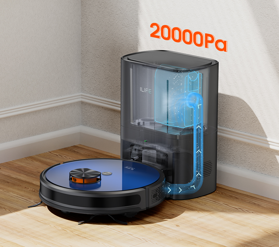 Featuring up to 20000Pa cyclone dust-collection technology, the self-empty station can automatically empty the robot's dustbin in 20 seconds after cleanup without clogging.