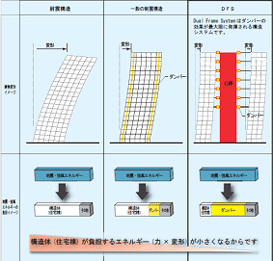 耐震構造や一般の制振構造に比べて、構造体(住宅棟)への負担が小さくなります